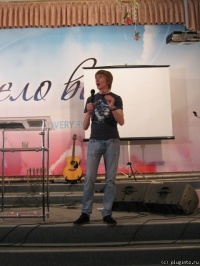 Александр Волков, молодежный пастор церкви «Дело веры» на межцерковном молодежном саммите "Жизнь в поклонении". Александр Волков напомнил, что поклонение — это не пять-шесть человек на сцене и не медленные песни, идущие после быстрых. Поклонение — это внутреннее состояние человека, это образ жизни. Именно поэтому саммит был назван так. Почему «саммит»? Потому что это встреча на высшем уровне. Что может быть выше уровня встречи с Богом?